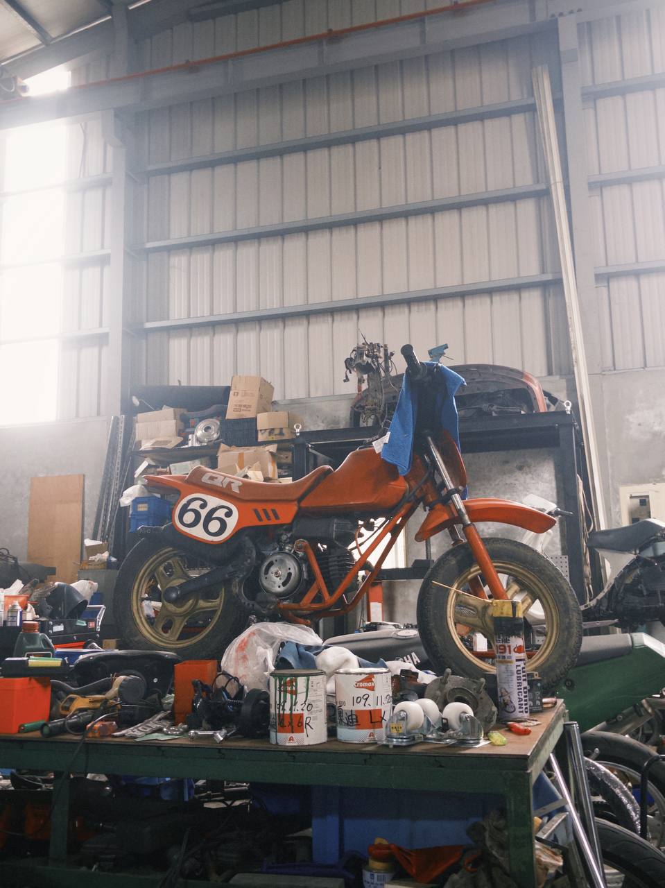 同一天下午去了女朋友哥哥的工作室。他在雲科有個廠房,做機車維修、老車改裝。那個空間就是一個男人夢想中的房間。他單純喜歡車子,收集了很多東西,不管這件事能帶來什麼價值或生產力。